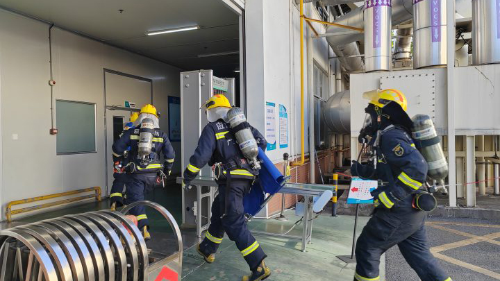2023年11月是第32个全国消防月,今年的消防宣传月主题为“预防为主,生命至上”,强调了预防火灾和保障生命安全的重要性。为提高公司突发事件应急响应疏散能力,确保突发事故时能快速、有序、有效的开展应急救援抢险工作,同时为检验应急救援预案的适宜性,熟悉应急预案的启动、应急处置、报警、救护和恢复程序与应急反应能力,进一步提高现场操作人员的应急反应速度和自救能力,查找出预案中的不足,加以改进和完善,公司在 2023年11月17日下午联合消防大队开展了2023下半年度全厂应急救援预案演练。
