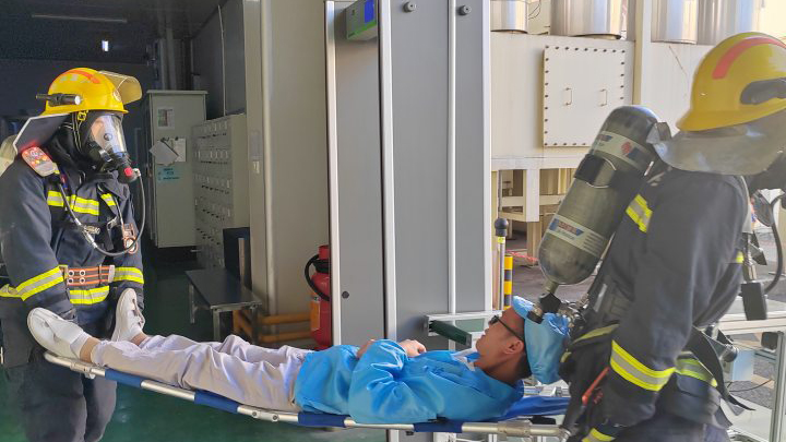 紧接着,现场指挥马上呼叫应急救援小组,马上展开了现场的应急支援!并进行初步的厂级应急救援处置响应,应急通信小组同步也向上级消防部门报告请求支援和人员被困的搜救信号。