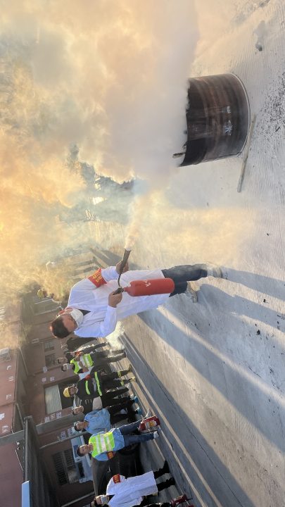 演习结束后,在厂区大门集中安排了公司各重点岗位员工、公司应急救援小组和新进员工等人员进行了消防器材实操培训和训练。